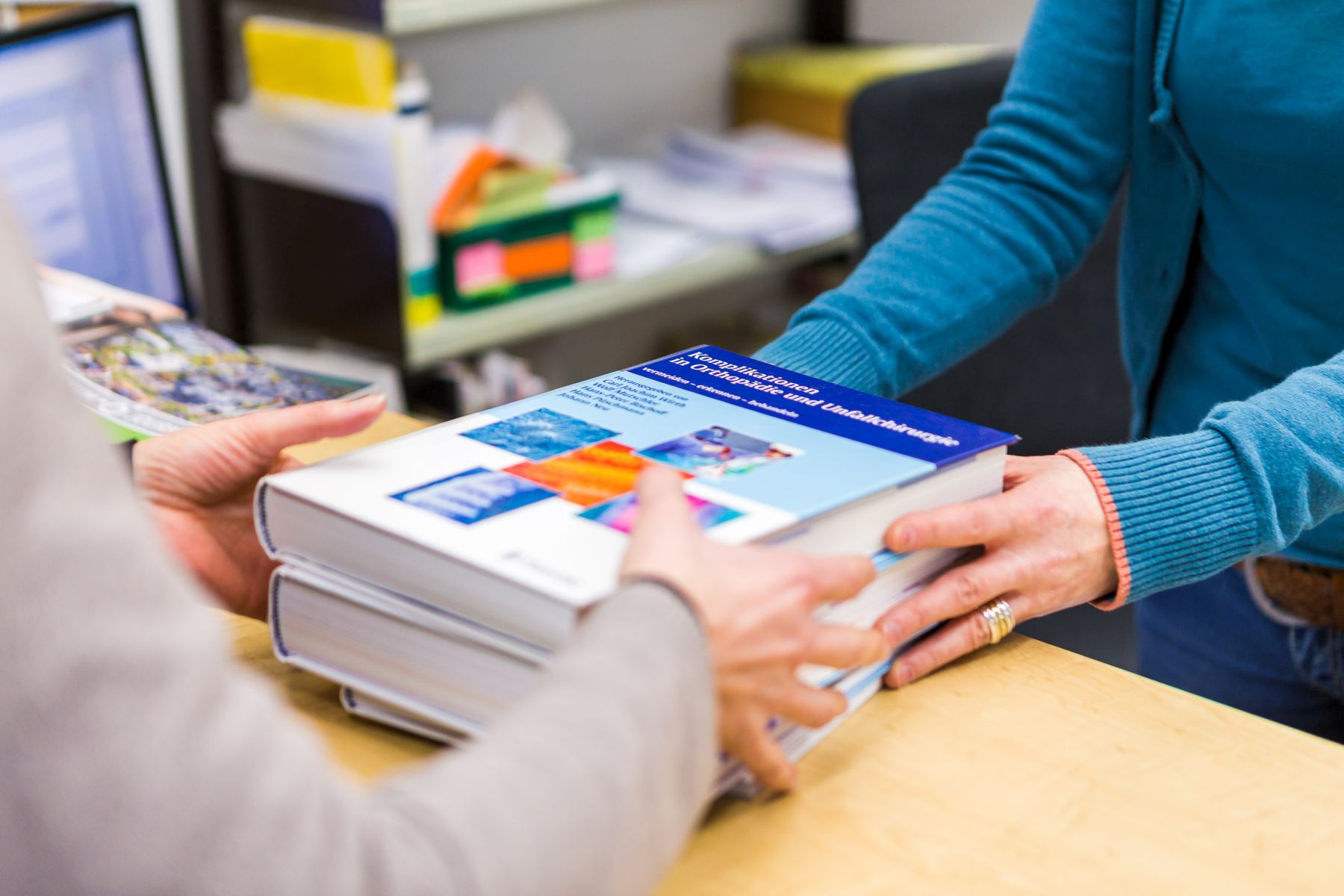 Entliehene Medien können direkt in der Fachbibliothek oder über den Rückgabekasten an der Information im Foyer des Klinikums abgegeben werden.