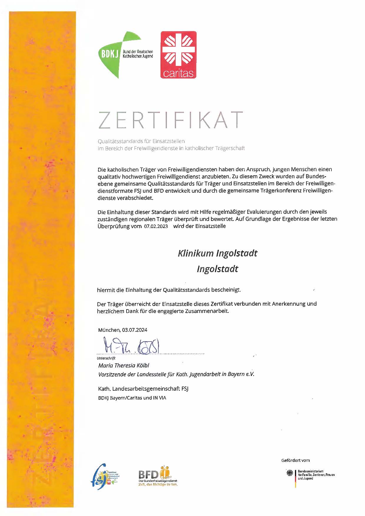 In Zusammenarbeit mit dem BDKJ stellen wir jedes Jahr im Pflegedienst jungen Menschen Plätze für ein FSJ bereit.