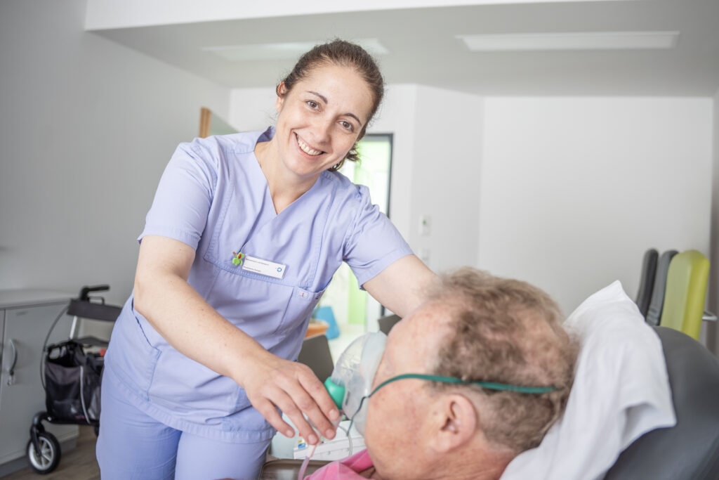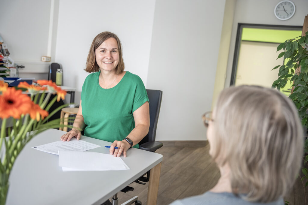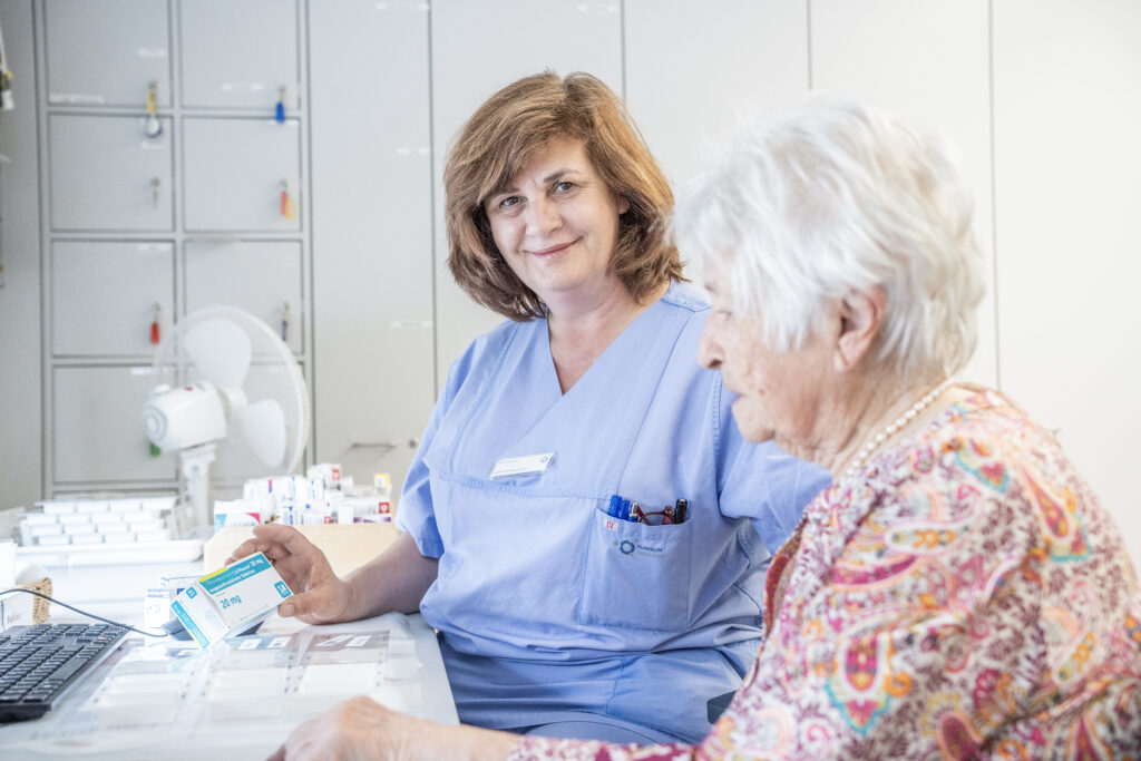 Frau Lazarus war aufgrund eines chronischen Schmerzsyndroms und wiederholter Stürze in unserer Akutgeriatrischen Tagesklinik in Behandlung. Nach ihrem dreiwöchigen Aufenthalt verlässt sie mit einem weinenden und lachenden Auge unsere Tagesklinik: Weinend, da sie die Fürsorge und Unterstützung, die sie von Ärzt*innen, Therapeut*innen und Pflegepersonal in dieser Zeit erfahren hat, sehr geschätzt hat. Lachend, weil ihre Beschwerden dank der optimal auf sie abgestimmten Therapien von Tag zu Tag weniger wurden. Zum Abschied hat sie sich, als Erinnerung an die schöne Zeit, den Ableger einer Pflanze gewünscht, die sie im Büro einer Mitarbeiterin entdeckt hatte. Bekommt sie natürlich.