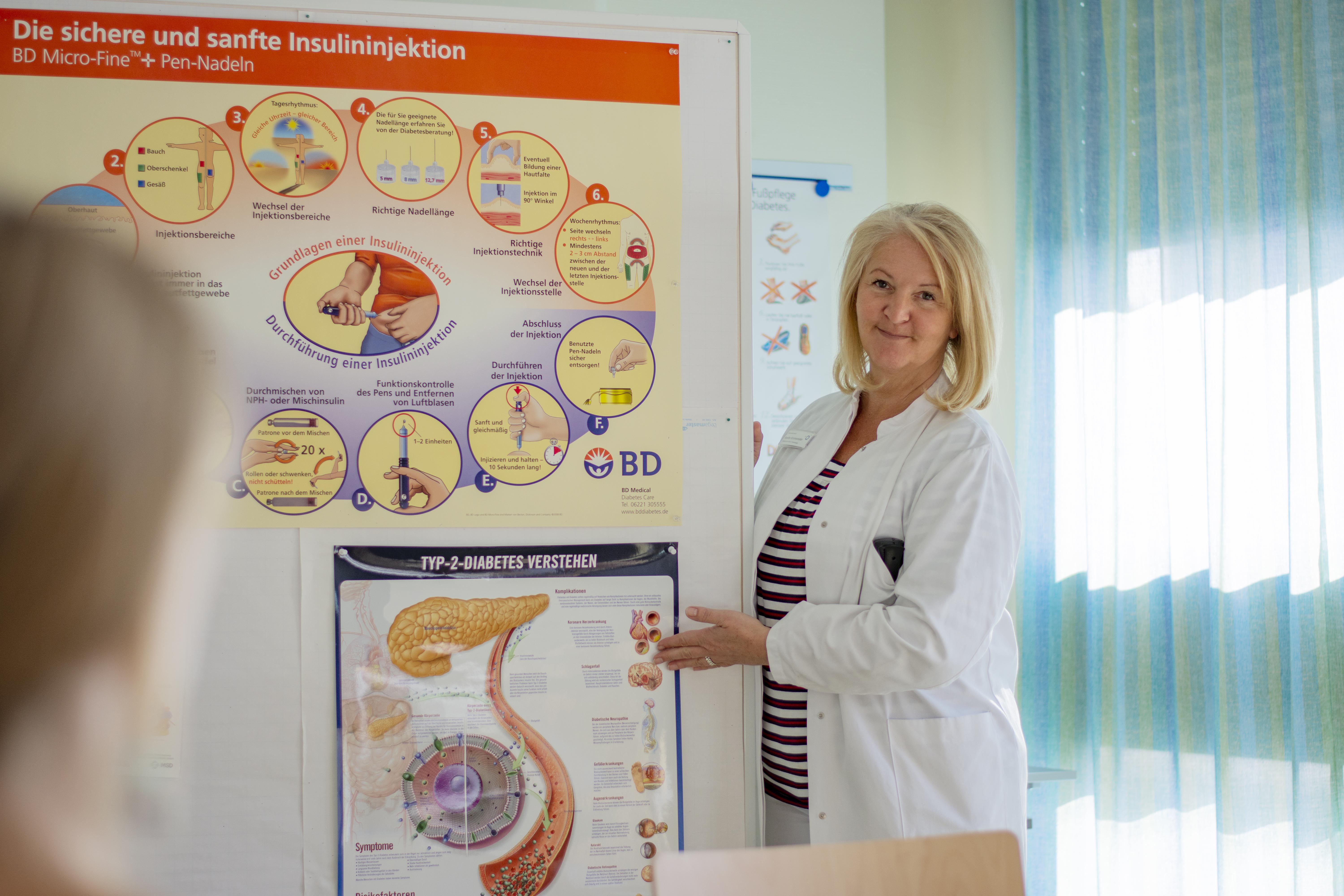 Ausreichendes Wissen und Kenntnisse über die Selbstkontrolle von Blutzucker und Blutdruck, gesunde Ernährung, körperliche Betätigung und Bewegung unterstützen die therapeutischen Maßnahmen des Arztes und sind Garanten für eine erfolgreiche Behandlung. In Einzelschulungen werden die wichtigsten Zusammenhänge der Erkrankung erklärt, in der Selbstmessung unterwiesen und erste Kontakte zu einem Leben mit gesünderer Ernährung und mit Bewegung eröffnet.