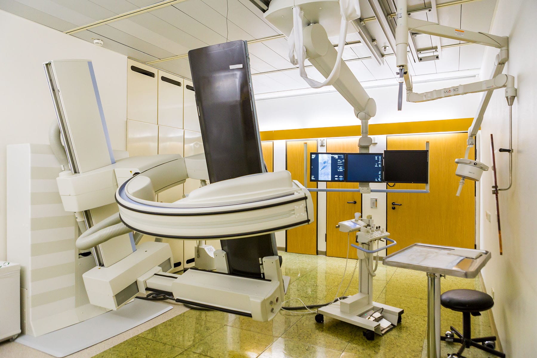 Bei der Fluoroskopie dringen Röntgenstrahlen in den Körper. Unsere moderne Durchleuchtungsanlage ist mit einem Flachbild-Detektorsystem ausgerüstet, wodurch die Aufnahmen digital erstellt werden, was eine Verminderung der Strahlendosis ermöglicht. Die Strahlenbelastung hängt dabei von der jeweiligen Untersuchung ab.