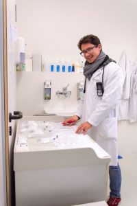 Diese sogenannten Zytostatika sind im Kampf gegen Krebs oft unerlässlich und kommen im Rahmen einer Chemotherapie zum Einsatz. Sie verhindern den Zellteilungsprozess im Körper und damit die weitere Ausbreitung des Tumors oder der Metastasen. Wenn man so will, ist das Zyto-Labor die Maßschneiderei für Tumorbehandlungen: Die Zytostatika werden für jeden Patienten individuell hergestellt. „Immer abgestimmt auf die speziellen Bedürfnisse, das Gewicht, die Größe und das Alter des Patienten“, sagt Maximilian Szatko, der als Apotheker in der Klinikapotheke, zu der das Zyto-Labor gehört, arbeitet. Neben Szatko sind in der Klinikapotheke zirka 20 weitere Fachkräfte beschäftigt, vier davon arbeiten im Zyto-Labor. „Um Zytostatika herstellen zu dürfen, muss man eine Ausbildung als Pharmazeutisch-technischer Assistent gemacht haben und jedes Jahr aufs Neue einen Nachweis darüber erbringen, dass man steril produzieren kann“, erklärt Szatko. „Unsere PTAs haben außerdem eine Weiterbildung im Bereich Onkologie.“ In der Apotheke werde sie deshalb liebevoll „die Zyto-Mädels“ genannt, über die Szatko mit Überzeugung sagt: „Die sind wirklich überragend.“