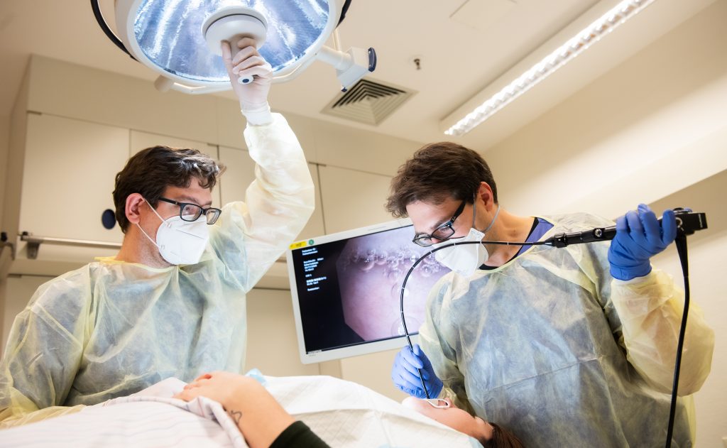 Angeboten werden darüber hinaus auch interventionelle Behandlungsmethoden, das heißt Behandlungsmethoden, bei denen keine Schnitte nötig sind. Vielmehr werden die Eingriffe oral mithilfe sogenannter Bronchoskope durchgeführt. „Das sind kleine medizinische Geräte, die über den Mund in die Atemwege eingeführt werden und mit denen wir beispielsweise einen Tumor abtragen und so die Atemwege wieder öffnen können. Man spricht hier von einer endobronchiale Tumorabtragung.“ Aber auch die Entnahme von Gewebeproben und Lungenspiegelungen unter Einsatz der Lungenspiegelung (Bronchoskopie) werden angeboten. Im Falle von endobronchialem Tumorwachstum sind auch Gewebeabtragungen möglich, um die Atemwege wieder zu eröffnen. Die Bronchoskope der neuesten Generationen haben mittlerweile nur noch Durchmesser zwischen zwei und acht Millimetern. Das macht die Behandlung für den Patienten besonders schonend, da kaum Gewebe beschädigt wird. „Gleichzeitig sind diese Geräte technisch so weit fortgeschritten, dass sie uns beste Bilder liefern und uns eindeutige Diagnosen ermöglichen. Das wiederum erhöht die Behandlungseffektivität und schließlich im besten Fall auch das Wohlergehen des Patienten“, beschreibt PD Dr. Lars Henning Schmidt.