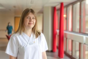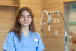 Sara Rettinger hat bereits 2016 als Bufdi am Klinikum Ingolstadt – Innere Medizin – begonnen. Ähnlich wie Hussem wollte sie damit die Wartesemester zum Medizinstudium überbrücken. Doch dann kam alles ganz anders. Ihr hat es so gut gefallen, dass sie direkt geblieben ist. Ich habe nach meinem Bundesfreiwilligendienst als Pflegeschülerin hier angefangen“, erzählt die 23-Jährige. „So etwas freut uns natürlich umso mehr,“ sagt Büchl. „Denn es ist auch unser Ziel, mit dem Bundesfreiwilligendienst Leute für das Berufsbild zu begeistern, auszubilden und später als fachlich versierten Nachwuchs einzustellen.“ Ihre Ausbildung schließt Sara dieses Jahr ab und beginnt ab Oktober als ausgelernte Krankenpflegerin auf der Intensivstation des Klinikums. „Das Haus bietet viele Weiterbildungsmöglichkeiten für junge, engagierte Mitarbeitende“, versichert Büchl. „Hier kann man es vom Bufdi bis zum Pflegedienstleiter schaffen.“ Außerdem gebe es auch innerhalb der Pflege sehr viele verschiedene Fachweiterbildungen. Ob in der Psychiatrie, Anästhesie, OP, Notfallmedizin oder eine der zahlreichen anderen Disziplinen. Man lernt nie aus.