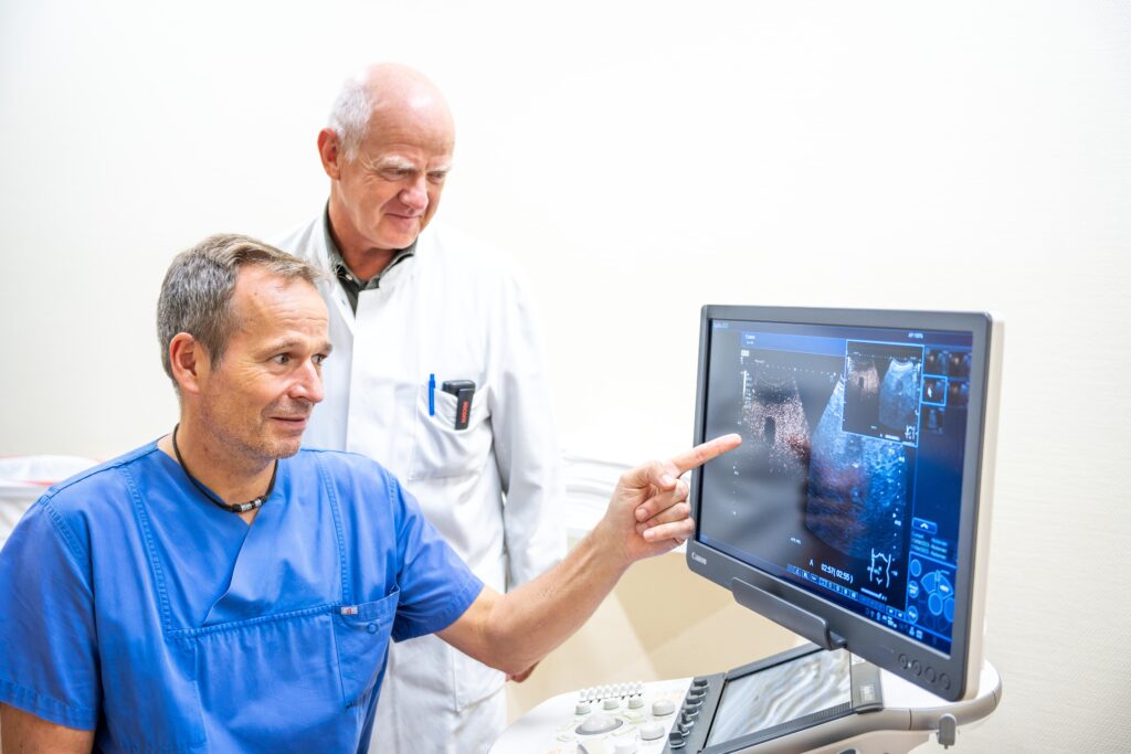 Ein besonderer Schwerpunkt der Gastroenterologie im Klinikum Ingolstadt ist die Diagnostik mit der Kontrastsonographie. Dabei handelt es sich um eine Ultraschalluntersuchung, bei der ein Kontrastmittel als Signalverstärker in die Vene gegeben wird. Das ist zur Abklärung eines Verdachts auf Leberkrebs relevant: Besonders an der Leber besteht dadurch die Möglichkeit, charakteristische Gewebemerkmale zu erkennen und häufig bereits ohne zusätzliche Untersuchungen wie z. B. Gewebeentnahme zwischen gut- und bösartig zu unterscheiden.