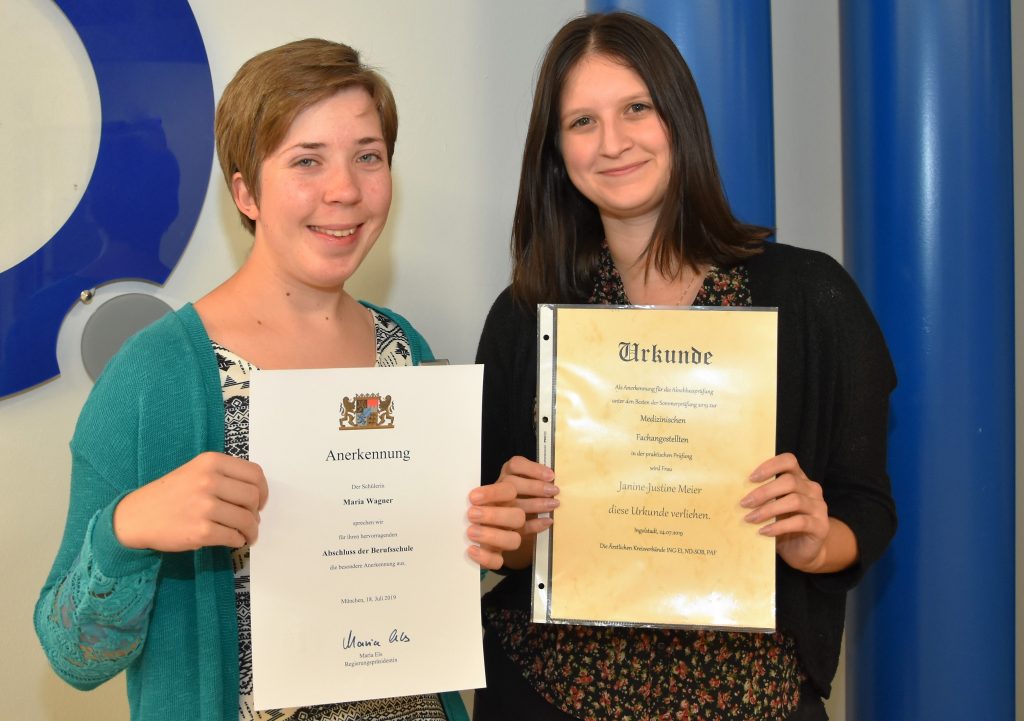Maria Wagner wurde sowohl für ihre hervorragende schriftliche Abschlussprüfung als auch für ihr Abschlusszeugnis der Berufsschule ausgezeichnet. Die 21-Jährige legte als eine der drei Besten der Region ihre schriftliche Abschlussprüfung ab. Für ihr hervorragendes Berufsschulzeugnis mit einem Notenschnitt von 1,2 wurde Maria Wagner darüber hinaus der bayerische Staatspreis von der Regierung von Oberbayern verliehen. Maria Wagner arbeitet zukünftig im Institut für Radiologie im Klinikum Ingolstadt.