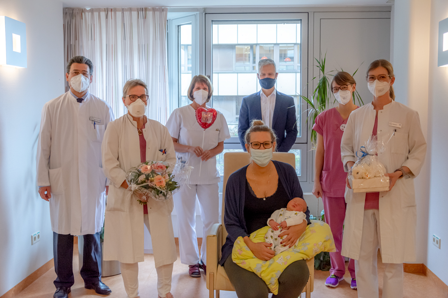 Kerngesund zur Welt gekommen ist Jubiläumsbaby Louis. Gemeinsam mit Mama Corinna Fehringer konnte er das Klinikum nach wenigen Tagen wieder verlassen – nicht jedoch, ohne vorher ein Stofftier für Louis sowie die persönlichen Glückwünsche des medizinischen Geschäftsführers Dr. Andreas Tiete und von Prof. Aydeniz und seinem Team entgegenzunehmen.