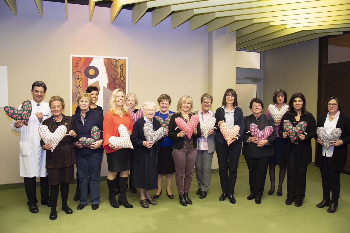 „Wir sind sehr dankbar, dass uns die Damen des Clubs auch in diesem Jahr wieder mit ihrer Spende unterstützen“, freut sich Professor Dr. Babür Aydeniz, Leiter des Brustzentrums und Direktor der Frauenklinik im Klinikum Ingolstadt bei der Übergabe. Das besondere an den bunten Kissen sind die beiden großen Herzflügel. Diese sind ergonomisch so geformt, dass Brustkrebspatientinnen sich die Kissen nach dem Eingriff unter die Achseln klemmen können. So lassen sich auftretende Druck- und Wundschmerzen verringern. „Wir übergeben die Kissen direkt nach der OP an die Patientinnen. Aus medizinischer Sicht erleichtern sie am Anfang das Liegen, später federn sie alltägliche Stöße ab, wie beim Husten oder Niesen“, erklärt der Facharzt für Frauenheilkunde die Wirkung. Neben dem medizinischen Aspekt spielen die kleinen Kissen auch für die Psyche der Patientinnen eine große Rolle. „Zu wissen, mit dem Schicksal einer Krebserkrankung nicht alleine zu sein und dass es Menschen gibt, die sich für einen engagieren, gibt den Betroffenen Mut und Zuversicht“, bestätigt Petra Weißbach, speziell qualifizierte Fachkraft für die Betreuung von Brustkrebspatientinnen im Klinikum.