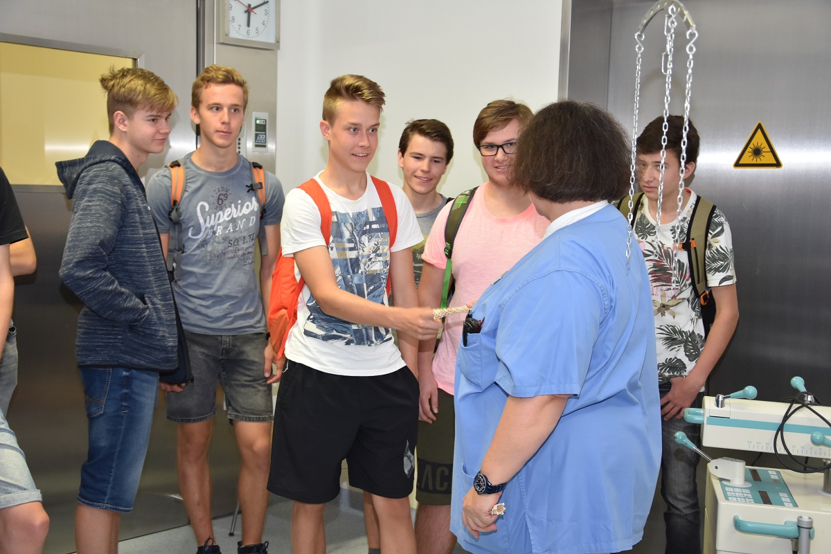 Im Anschluss konnten die Schülerinnen und Schüler hautnah miterleben, wie Opfer von Verkehrsunfällen am Klinikum versorgt werden und welche kurz- und langfristigen Folgen Unfälle haben. Dazu bekamen sie Einblicke in die Abteilungen, die besonders oft mit Unfallopfern zu tun haben: die Notfallklinik, die Intensivstation, die Abteilung für Rehabilitation und Physiotherapie und auch die Unfallchirurgische Station. „Wir wollten deutlich machen, dass ein Moment der Unachtsamkeit und die Verharmlosung von Drogen und Alkohol das Leben auf einen Schlag verändern kann und möchten den Jugendlichen diese tragische Erfahrung ersparen. Deshalb machen wir solche Aktionstage immer wieder gern und aus voller Überzeugung“, erklärt Prof. Wenzl.