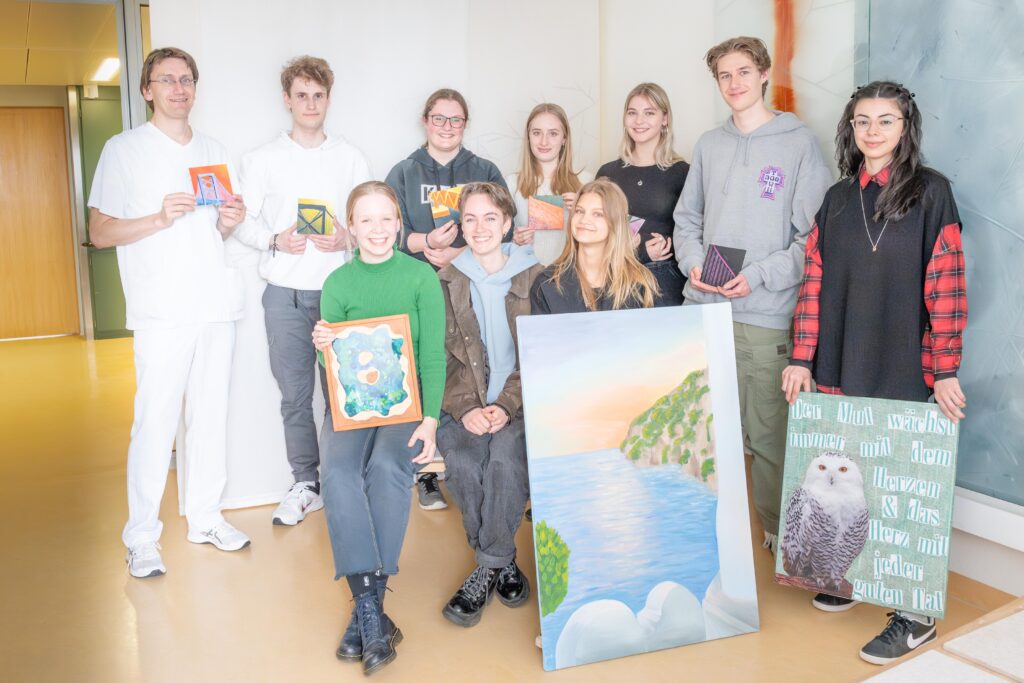 Die Bilder haben alle ihre ganz eigenen Botschaften: „Wir möchten jungen Menschen aus der Region die Möglichkeit geben, sich kreativ mit dem Thema der palliativen Versorgung auseinanderzusetzen. Die Verschönerung unserer Abteilung ist ein erfreulicher Nebenaspekt.“ In der Palliativstation werden Patient*innen versorgt, deren Erkrankungen nicht oder nicht mehr heilbar sind.