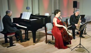 Die Musiker spielten im ersten Konzertteil unplugged und boten ihren Zuhörern den puren, klassischen Klavier-, Violoncello- und Saxophon-Klang. Nach der Pause ging es verstärkt weiter mit E-Cello, Keyboard und Loop-Station. „Damit bekommt das Publikum erstmals die Möglichkeit, in ein und demselben Konzert die Vorteile und Unterschiede der akustischen oder elektronischen Musik kennenzulernen“, so Banhierl weiter. Die Arrangements des neuen Programms stammen zur Hälfte von ihr, zur anderen vom Kollegen Gundlach.
