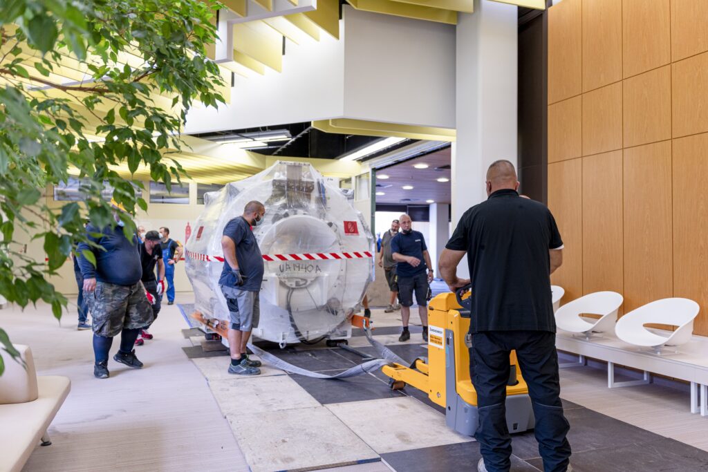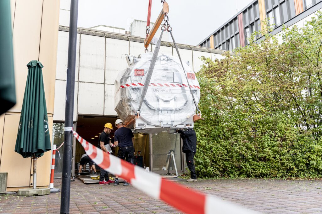 „Allein der Magnet des neuen MRT-Geräts wiegt rund acht Tonnen. Ein solches Großgerät in ein Krankenhaus bei laufendem Betrieb einzubauen, ist eine besondere Herausforderung. Leider war es um wenige Zentimeter zu groß für unsere Eingangstür. Deswegen haben wir neben dem Haupteingang einen Teil der Fassade und eine Innenwand demontiert, um das Gerät an seinen Platz zu ziehen und zu schieben“, erläutert Andrea Bugl, Leiterin Bau und Technik im Klinikum Ingolstadt.